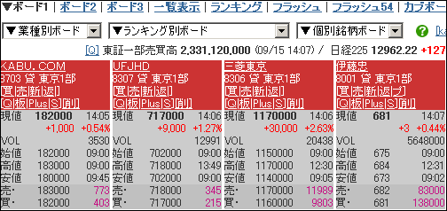 カブドットコム証券を徹底解説私が2番目に口座を作ったネット証券はイーウイング証券でした。イー・ウイング証券(e-wing証券)と日本オンライン証券とで合併して 平成13年4月よりカブドットコム証券として営業を開始しました。 カブドットコム証券 カブドットコム証券の一番いいところは、株価ボードでしょうか。 とにかく、すごく見やすいのです。 ![]() こんなボードの画面で、すっごくわかりやすくていいのです。 ネット証券の中で一番じゃないでしょうか。 ■分析ツールがすごいです。 Meネット証券と合併して、Meネット証券のウリだった分析ツールを 引き継いだのです。 kabuスコープとkabuカルテがすごいです。 kabuスコープとは、全上場銘柄のなかから、現在売買シグナルが発生している銘柄だけを一発表示する銘柄抽出ツールです。注目度の高い11種類のテクニカル指標を用い、24通りの条件設定で過去2年間の売買シミュレーションを実施。シミュレーション結果の順番に銘柄を抽出するなど、膨大なデータ処理をすることにより最適な答えを導きます。 kabuカルテとは、11種類のテクニカル指標による24通りのシミュレーション結果と各テクニカル指標から判断される株価の現状分析も合わせて一覧表示する銘柄分析ツールです。過去の株価形成の癖を見抜くことで、銘柄ごとに最適なテクニカル指標を探る手がかりとなります。 難しいことが何もわからなくても、買いシグナルや売りシグナルが出るので 銘柄を選ぶときには、助かります。 これらの株価ボード、kabuスコープとkabuカルテのツールを カブドットコム証券の口座を作るだけで、無料で使用できるのです。 だから、口座を作ってツールだけを利用する、という手もあります。 ■注文機能が豊富で、ザラ場が見れない忙しいサラリーマンでも 細かな注文を出すことができます。 逆指値 / W指値 / ±指値 / Uターン注文 / リレー注文 逆指値とは、株価が売買注文時から「指定の株価まで下落したら売り」 「指定の株価まで上昇したら買い」とする注文形態のこと。 通常の指値注文と反対の形態であるため「逆指値注文」と呼ばれています。 逆指値があればロスカットもトレンドフォローも自由自在。損失の拡大を防ぎ勢いに乗って利益を伸ばすような売買を目指すことが可能です。 リレー注文とは銘柄乗換えをまとめて注文することです。 「手持ちのA株を売って新規にB株を買いたい」場合は、リレー注文で。売り注文→約定確認→買い注文という一連の操作が一度の注文実行可能。もちろん、「買ってから売る」パターンもOK。市場の値動きをウォッチしている必要がありませんから、お忙しい方でも銘柄乗り換えが簡単に行えます! ±指値とは、カブドットコム証券だけの機能で、 「始値より30円高ければ買い」「約定価格より100円下がれば売り」などを あらかじめ設定できます。 ■カブコールでは、約定したら携帯電話、パソコンにメールが届くように 設定できます。指定電話への音声通知もでき、これはカブドットコム証券だけの機能です。 ■IPO(新規公開株)に申し込んで、結果を知るのに、カブドットコム証券は携帯・パソコンに当選・落選のメールをくれます。 他のネット証券はサイトにアクセスして結果を調べるようになっています。 ■お金があまりないから株はできない・・・という方にはプチ株もあります。 1株から取引できる究極の少額株式取引です。 ■三菱UFJ証券リサーチレポートが無料で読めます。 三菱UFJ証券のストラテジストやアナリストが作成する「株式ストラテジー」「セクターレポート」「日本株リサーチ」「J-REITリサーチ」などのリサーチレポートを、ログイン後の専用サイト内でPDFファイルで読むことができます。 こんなに魅力たっぷりのカブドットコム証券の口座は、作っておかないと 損のような気がします。 個人的にも、大好きな証券会社です。 ■取扱商品ラインアップ 現物株式 / 信用取引 / プチ株 / プチ株Rつみたて / 先物・オプション取引 / カバードワラント / 新規公開株/公募・売出 / 投資信託 / 投信つみたてファンド星人 / 法人口座 ■現物手数料 約定金額 インターネット 電話 自動音声応答 成行 指値 成行 指値 2万円以下 105円 630円 210円 735円 20万円以下 500円 1,025円 605円 1,130円 100万円以下 1,050円 1,575円 1,155円 1,680円 1,000万円以下 1,890円 2,415円 1,995円 2,520円 1,000万円超 1,000万円を超える部分に対して、100万円ごとに42円加算。 複数単元の注文を発注し、その約定が複数日にまたがる内出来での約定となる場合、他の証券会社では、各々の日付ごとに単独の注文・約定として手数料が必要となり、予期せぬ割高な手数料となるケースがあります。 しかし、ワンショット手数料Rでは、初めに複数単元で発注した一つの注文として手数料を計算しますので、約定が複数日にまたがった内出来となっても手数料が変わりません。 また満60歳以上の人は、現物株式の売買手数料が通常の1割引になる割引プランがあります。 